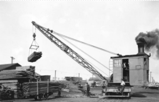 Dans le même temps, l’usage de ces engins « de manutention » (le terme apparaît en français en 1820) s’étend sensiblement : il conquiert les ports, mais aussi les usines, les entrepôts, les chantiers de construction, les sites ferroviaires ; les grues deviennent mobiles, montées sur rails ou sur roues, et sont elles-mêmes motorisées de façon à se déplacer partout sur un site industriel ; par ailleurs, de nouvelles machines apparaissent comme les ponts roulants et les portiques. On assiste ainsi à une mécanisation et à une industrialisation de la fonction de chargement ; parallèlement émergent de nouveaux métiers, afférents à la conduite mais également à la maintenance de ces engins.