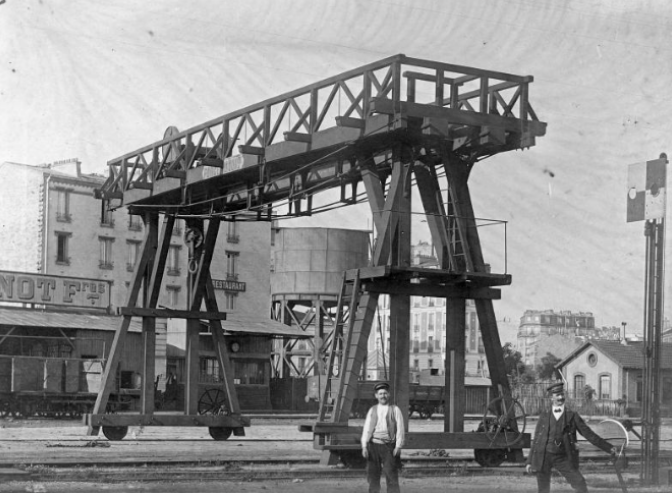 Portique de chargement de marchandises dans une gare (France, début du XXe siècle)