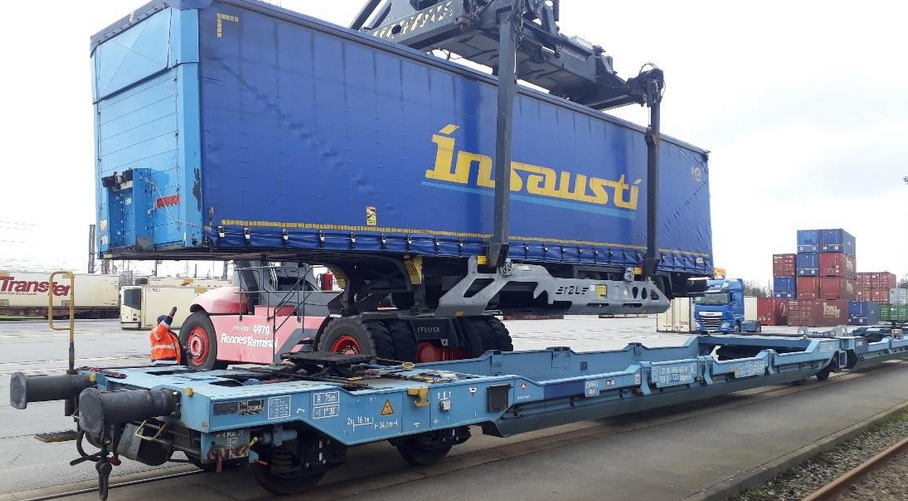- pour les UTI « non préhensibles », c’est-à-dire les semi-remorques routières non équipées de platines, on utilise comme pour les UTI préhensibles la manutention verticale (portique ou grue) moyennant des « paniers » de chargement glissés sous la semi-remorque, ou bien des systèmes de manutention produisant un mouvement horizontal, où l’UTI est poussée du wagon au sol ou vice-versa.