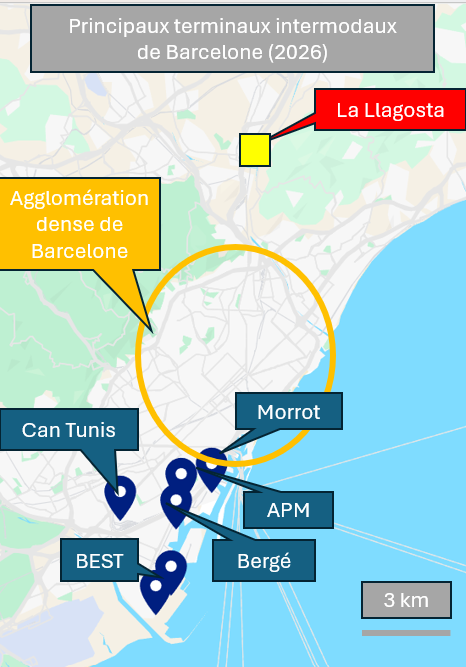 Ce mois de janvier 2026 voit l’ouverture au trafic du terminal intermodal de Barcelone – La Llagosta. A cette occasion, nous proposons aux lecteurs de la Combilettre de faire la connaissance de ce nouvel équipement appelé à améliorer sensiblement l’offre en combiné rail-route dans la péninsule ibérique ainsi que de et vers le reste de l’Europe. C’est l’objet de ce Dossier du mois, le premier de la nouvelle année !