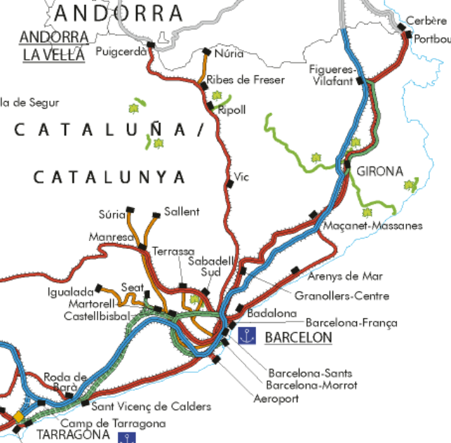 - le terminal historique ADIF de Barcelone-Morrot, situé au cœur de la ville, au pied de la colline de Montjuic ;