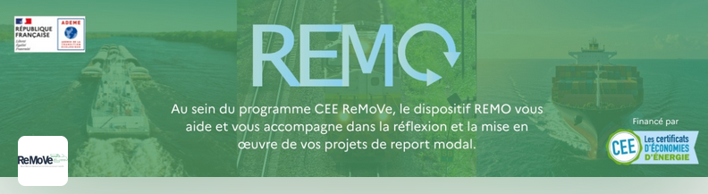 Le volet REMO s’inscrit dans le programme CEE-REMOVE. Il vise à soutenir des opérations de report modal de marchandises de la route vers des modes massifiés (ferroviaire, fluvial ou cabotage maritime).